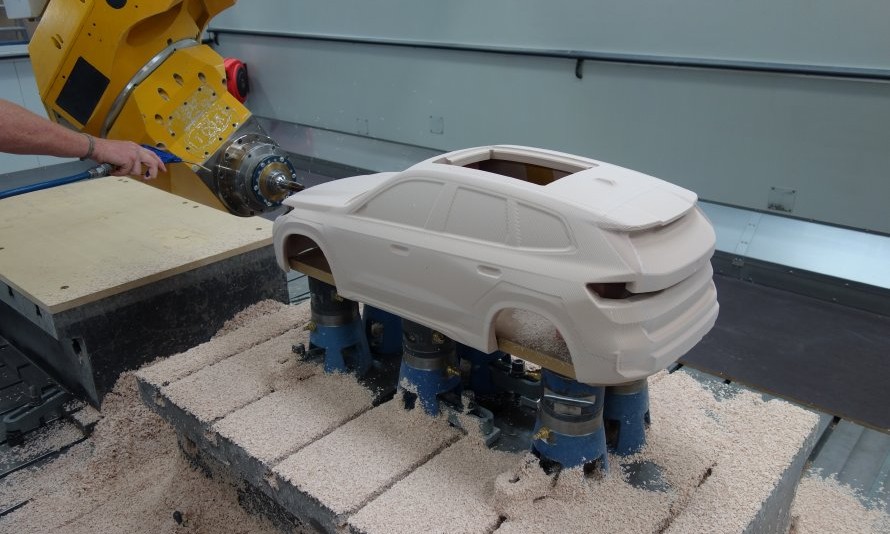 Beim Bau dieser 1,1m großen Fahrzeuge können wir besonders mit einem vielfältigen Firmenaufbau und einer enormen Fertigungstiefe überzeugen. Startpunkt der Fertigung war die Modellkonstruktion in CATIA, im Anschluss folgte die CAM-Programmierung für die Bauteilanfertigung auf den Fräszentren, in denen Karosserie sowie Fahrwerksteile gefertigt wurden.