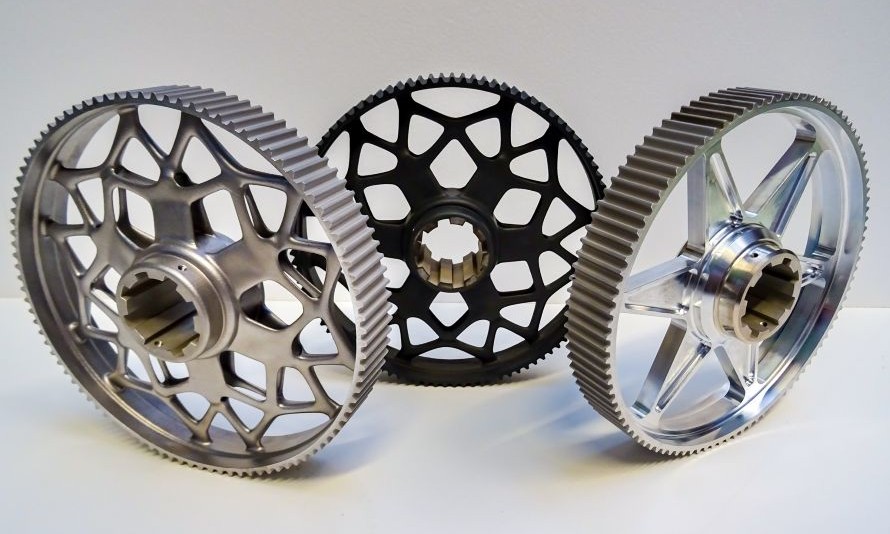 Die Aluminiumbauteile wurden in einer konservativen Variante gefräst, während zwei weitere Varianten topologisch optimiert gedruckt wurden. Die tolle Optik war hierbei keineswegs Entwicklungsziel - ein möglichst niedriges Gewicht hingegen schon.